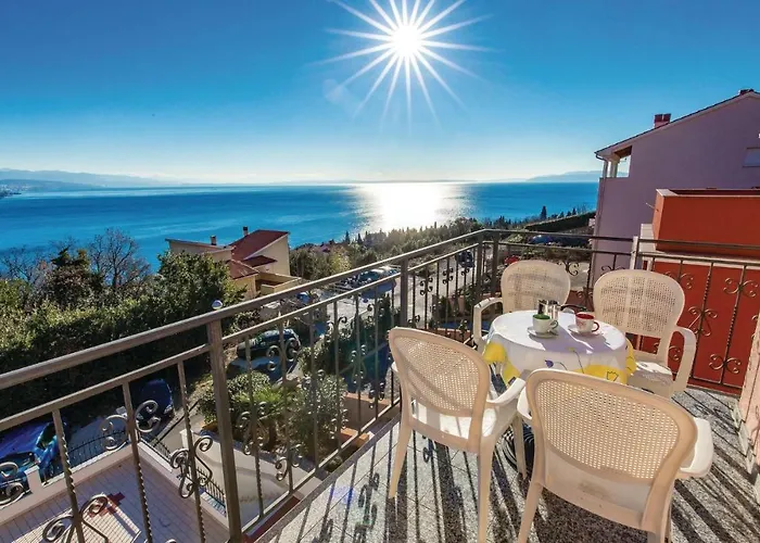 Awesome Apartment In Volosko With 1 Bedrooms And Wifi posiada taras z widokiem na morze.